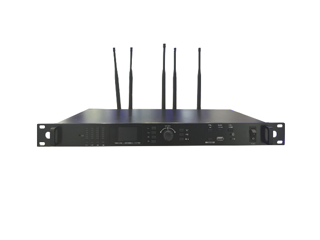 无线会议系统,一拖1-99分主席和代表,会议单元手持麦克风可混合使用。开会增加人数时,不需叠加主机,只需增加会议单元就可以了。无线远程批量对频功能,不需要像传统红外线对频那样要近距离和主机一对一的对频方式。有讨论会议先进先出的(轮替模式)和固定发表性会议的(限制模式)。主席单元需优先发表时,可一键关闭所有开启的代表单元。同时发言的人数可设置为1-4人